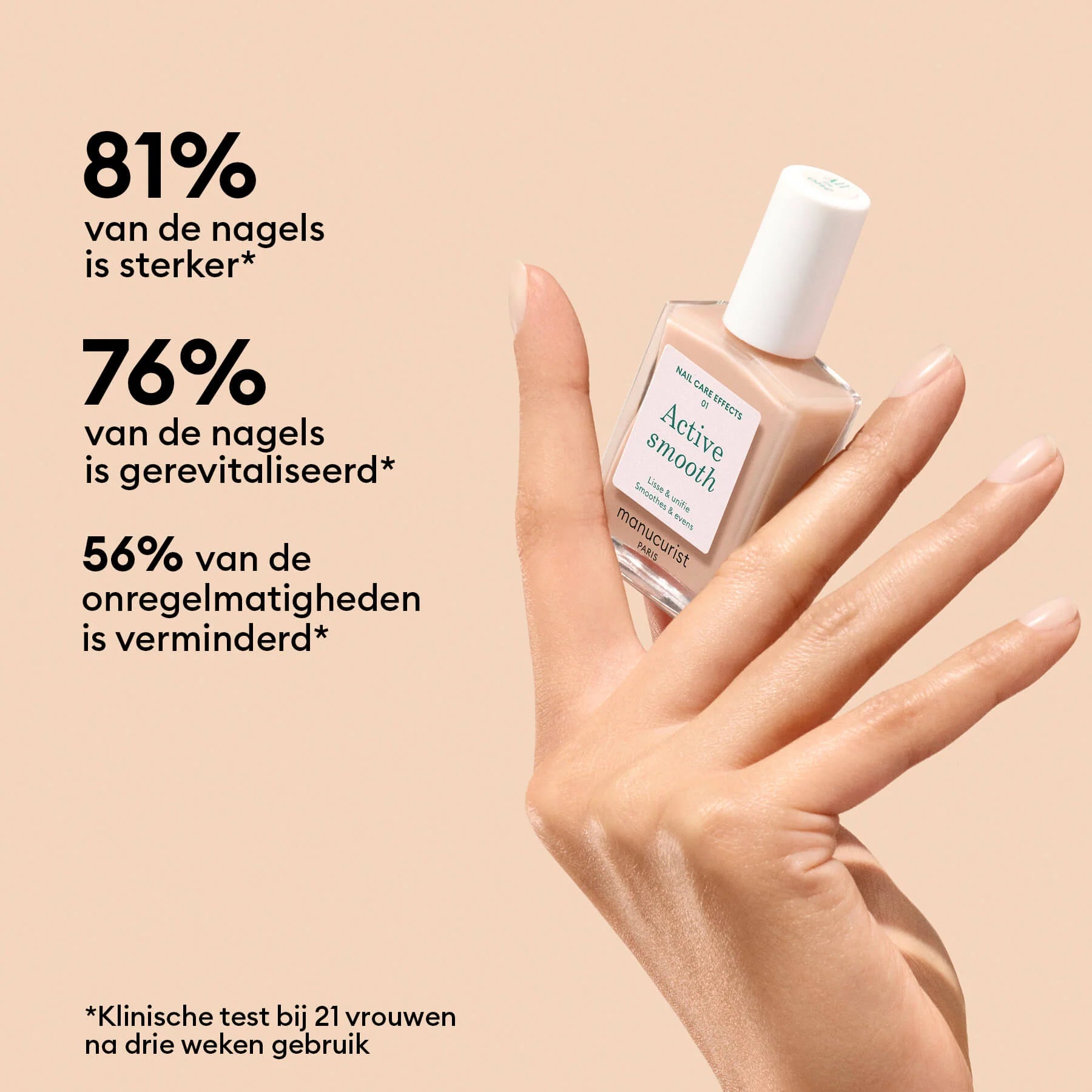 De eerste verzorgende nagellak met verfraaiend CC Polish-effect om ribbels glad te maken, imperfecties weg te werken en het nageloppervlak glad te maken!
