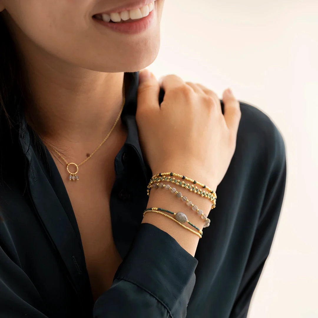 Omarm je intuitie met de Advanced Labradoriet Goudkleurige Armband. De goudkleurige glaskralen en labradoriet edelstenen zijn geregen op een draad die je 3 keer om je pols kan wikkelen. Combineer deze armband met meerdere armbanden voor een extra kleurrijk geheel. A Beautiful Story sieraden hebben een betekenis en ondersteunen je op je pad.