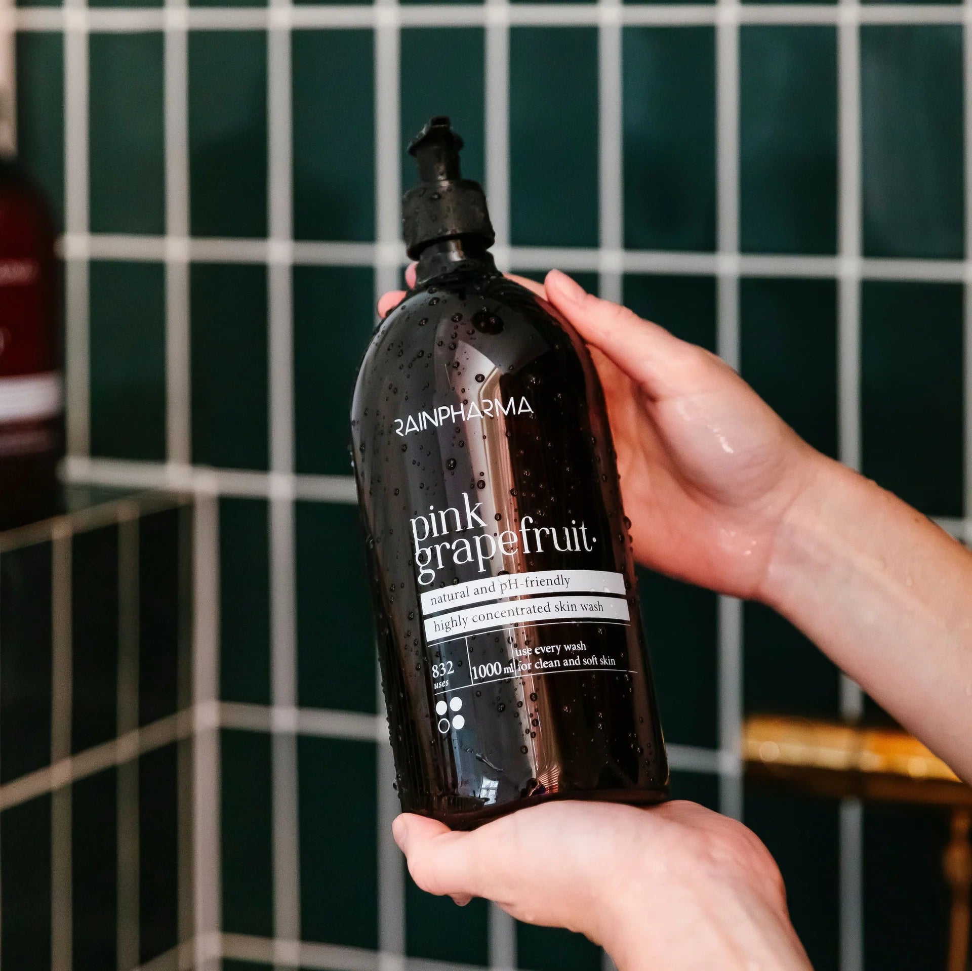 Onze Skin Washes zijn gemaakt van de beste ingrediënten op plantaardige basis. Ze hebben een pH van 5,5, waar de huid een pH tussen 4,2 en 5,6 heeft. Om je huidflora gezond en stabiel te houden tijdens het wassen, is het belangrijk dat je wasgel binnen deze waarden blijft. Met hun pH-waarde van 5,5 zijn de RainPharma Skin Washes pH- en dus huidvriendelijk.