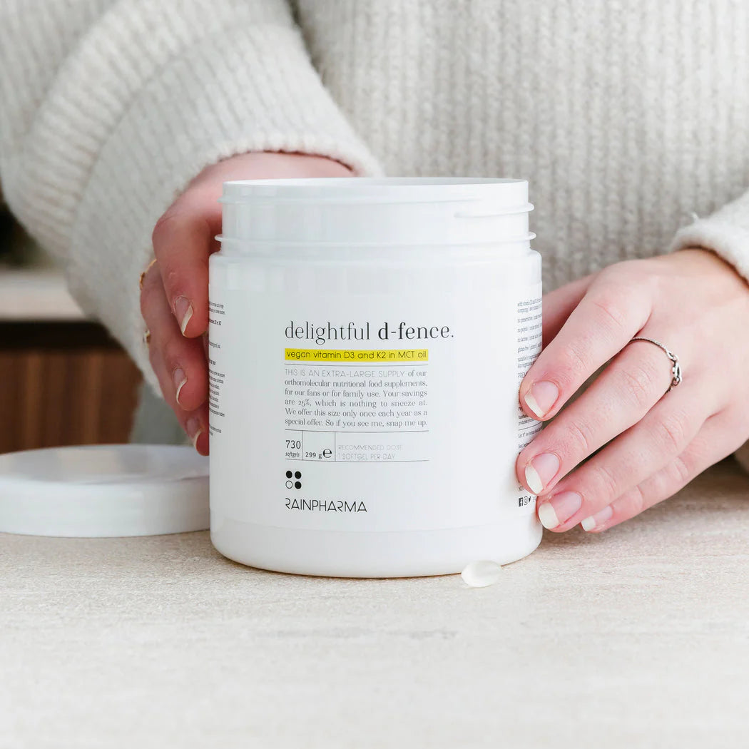 Delightful D-fence is een premium voedingssupplement met vitamine D3 en K2.