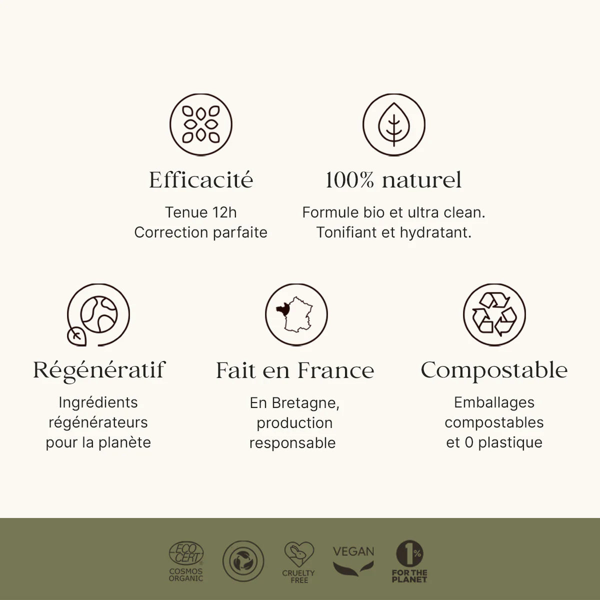 Eclo Foundcealer Beige Classique. Een 2-in-1 balsem gemaakt met biologische wassen en biologische rogge, perfect voor een lichte huid met neutrale ondertonen.