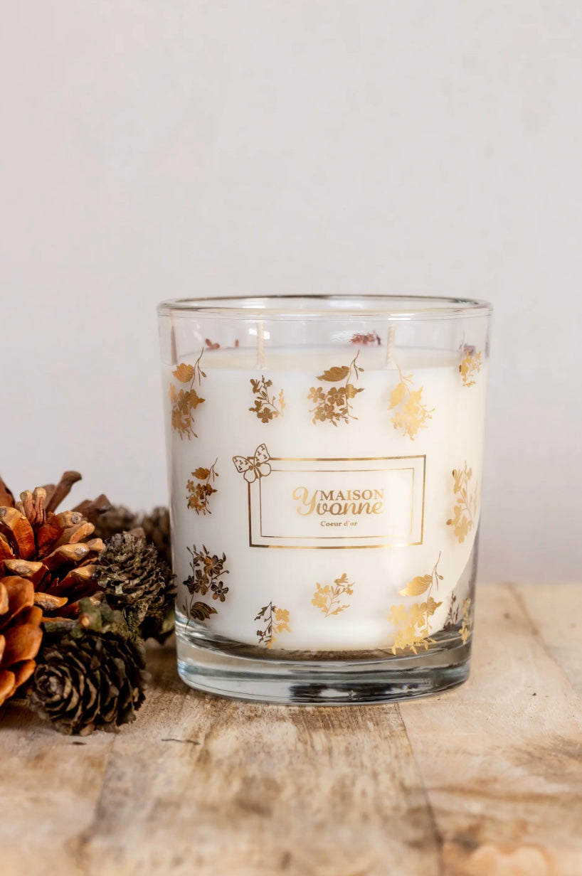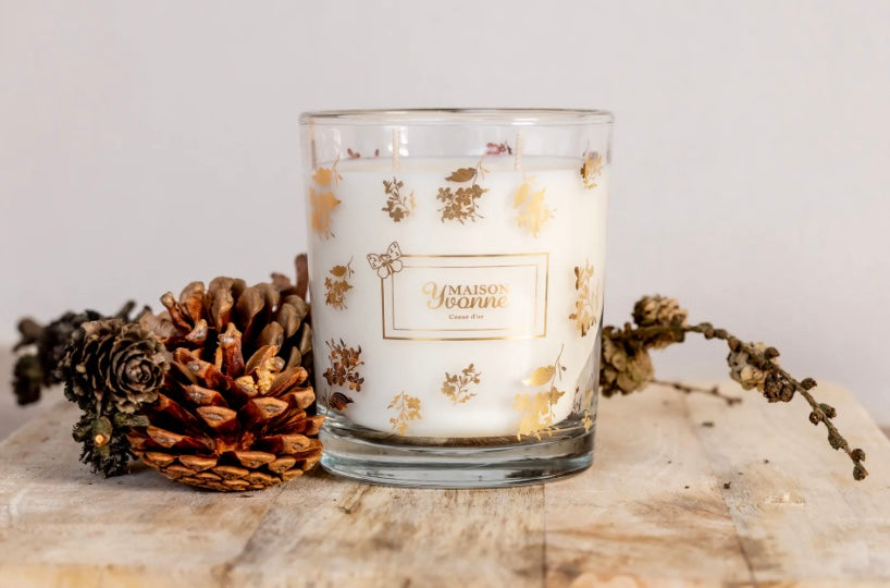 Deze kaars komt in een doorschijnend glas waar onze unieke bloemen als juwelen tot leven komen.