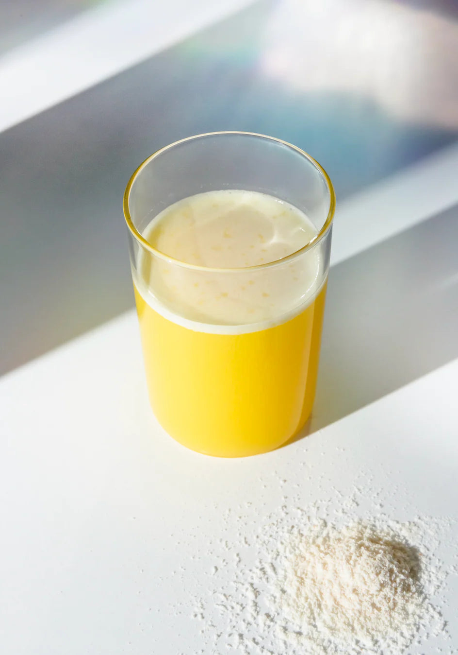 Daaraan voegden we vitamine C en collageen toe. Dit laatste is een bijzonder eiwit: collageen is een bouwsteen van het bindweefsel in onder andere kraakbeen, pezen, spieren, bloedvaten en huid.