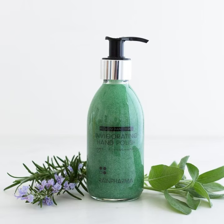 Invigorating Hand Polish van RainPharma bevat scrubdeeltjes uit jojoba en maken je handen streelzacht zonder de huid te beschadigen. De plantaardige formule, zonder irriterende bewaarmiddelen of synthetische schuimmakers, is pure verwennerij voor je huid. En dan heb je de intense geur van salie en rozemarijn nog niet geroken!