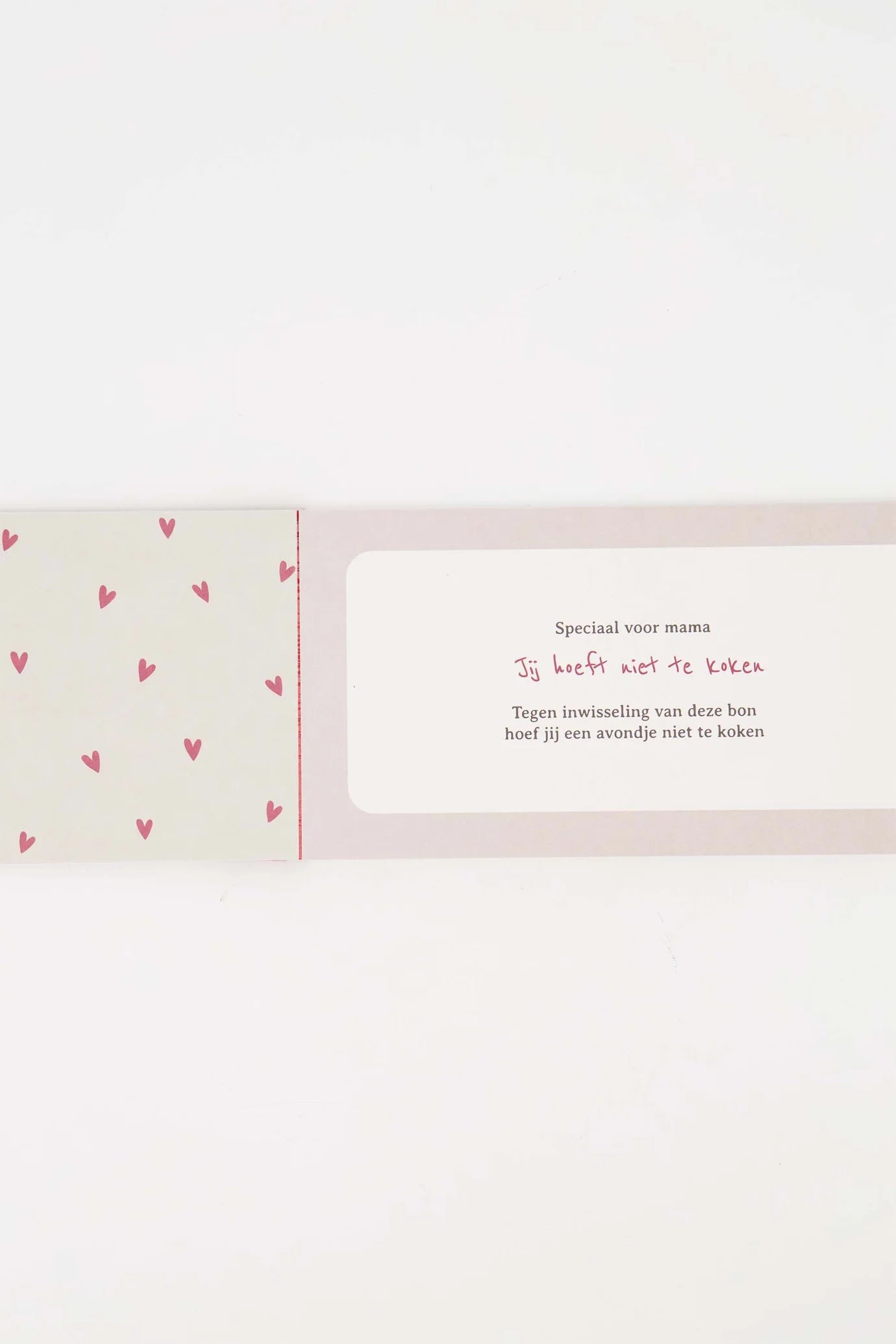 Dit is het perfecte kadootje voor mama! In dit kadobonnen boekje van Zusss staan allerlei tegoedbonnen. Daar wordt ze zeker blij van! Het boekje heeft de kleuren rood, wit en linnen. Het formaat van het boekje is 10x21cm.