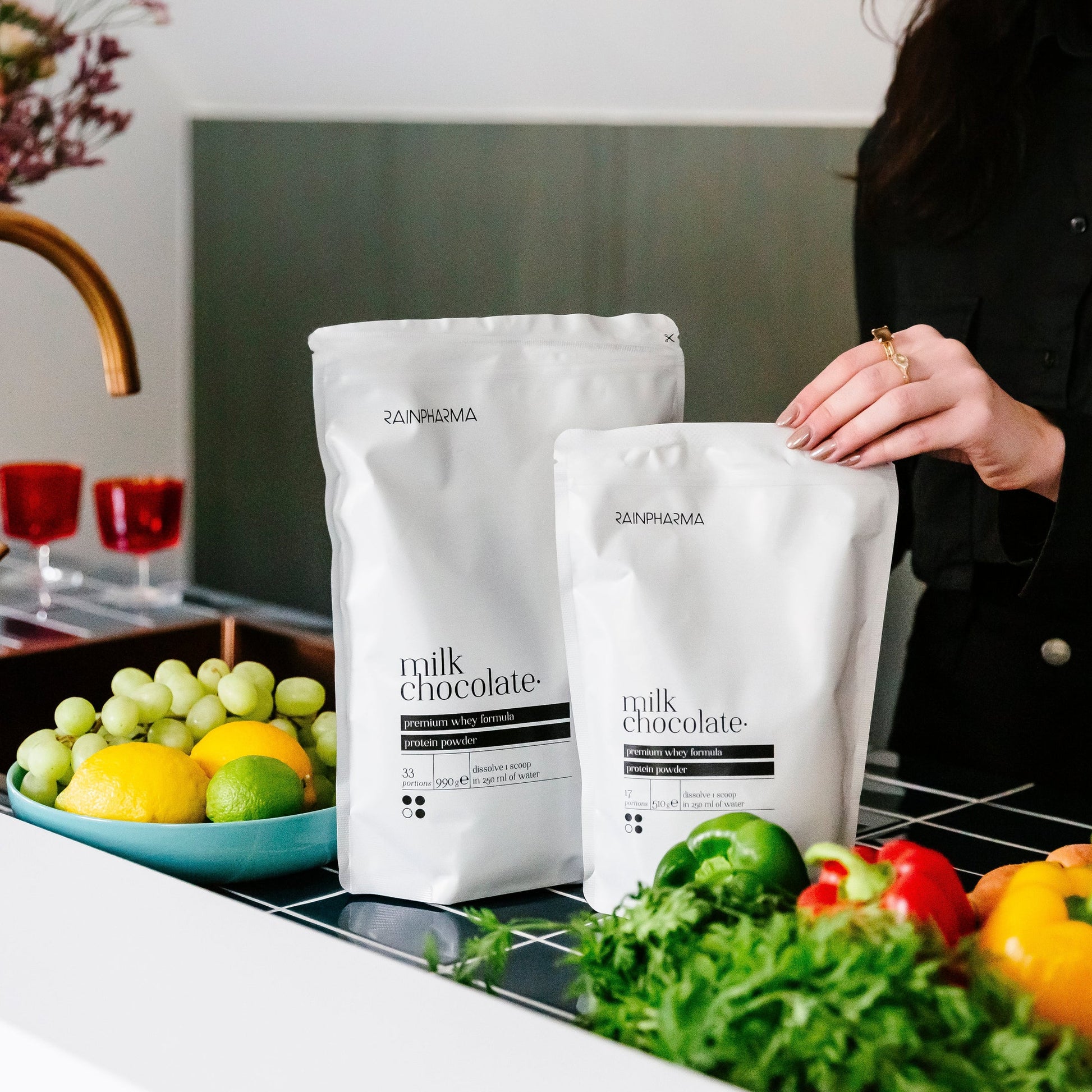 - Bijna alles in ons lichaam is gemaakt uit eiwitten: je spieren, huid, cellen. Om je lichaam te ondersteunen is het belangrijk dat je genoeg eiwitten consumeert doorheen de dag. RainPharma shakes kunnen je hier makkelijk mee helpen.