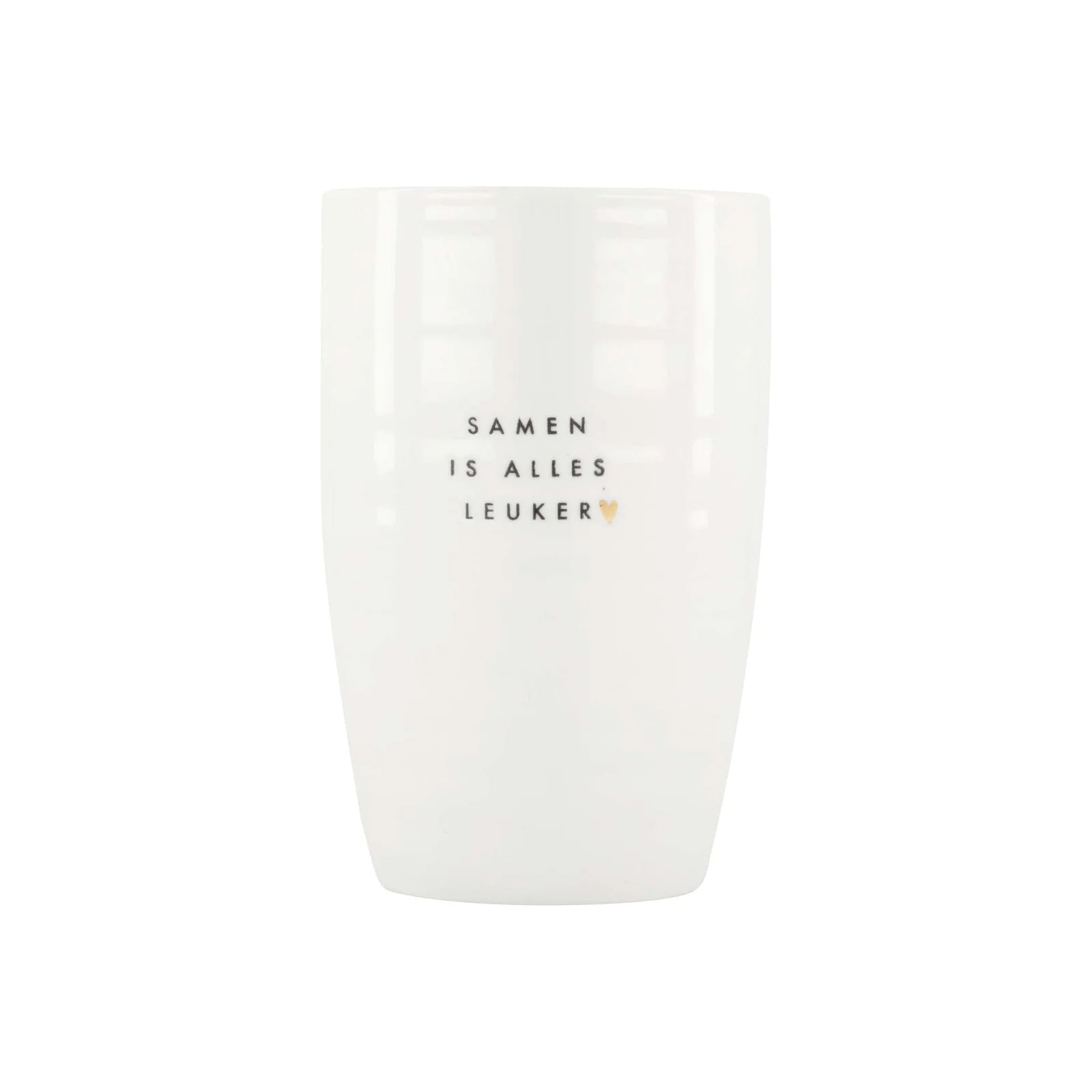 Deze prachtige Mok L - Samen is alles leuker is het perfecte gezelschap voor al je warme drankjes. Gemaakt van hoogwaardig keramiek voelt hij prettig in de hand en laat je genieten van die geliefde momenten samen. Met zijn speelse tekst en stralende wit, brengt hij gezelligheid aan tafel.