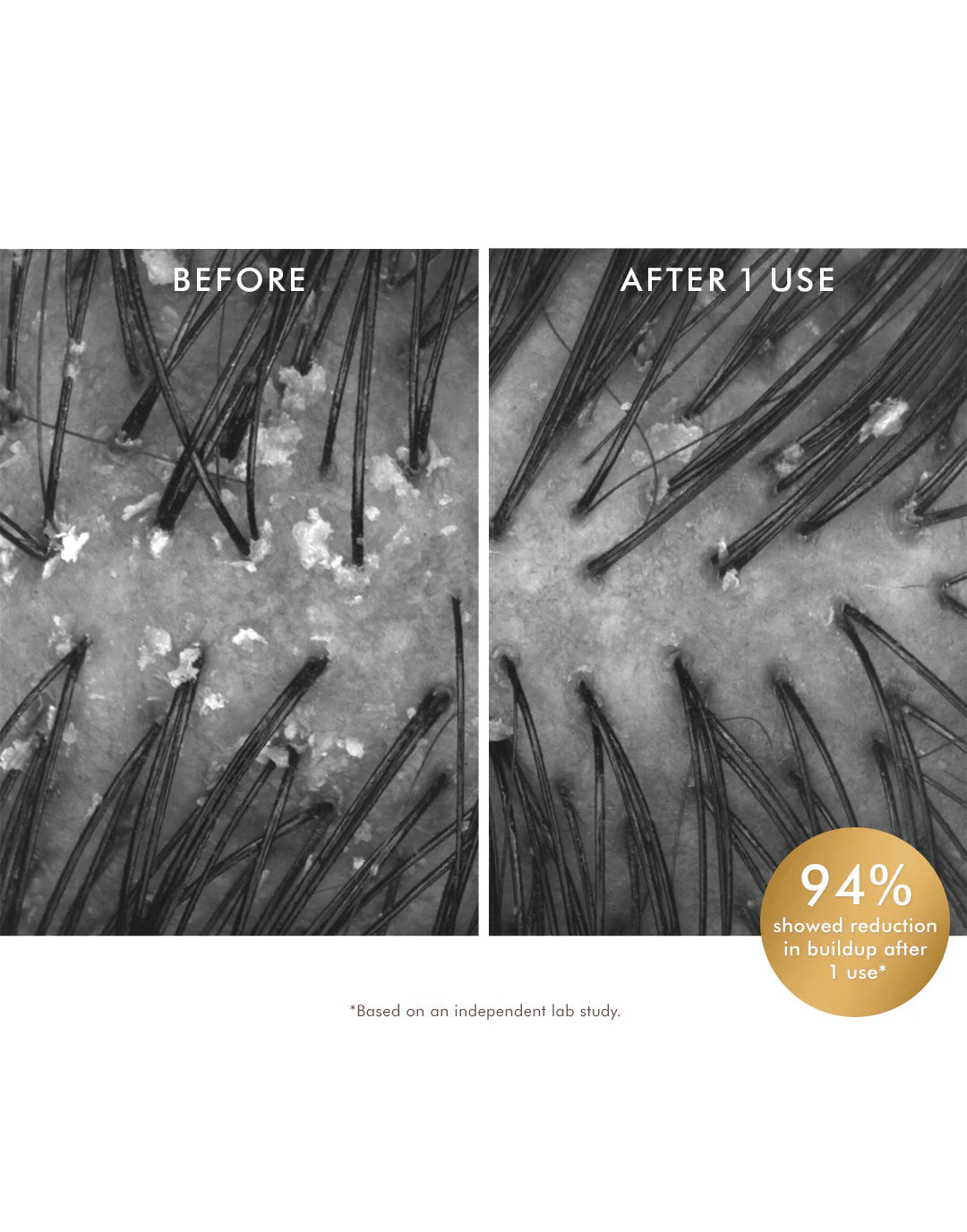 Een zachte exfoliërende hoofdhuidscrub om te gebruiken vóór het wassen met shampoo om zichtbare schilfers, vettigheid en ophopingen te verminderen, waardoor een gladdere hoofdhuid en veerkrachtiger, frisser haar zichtbaar worden.