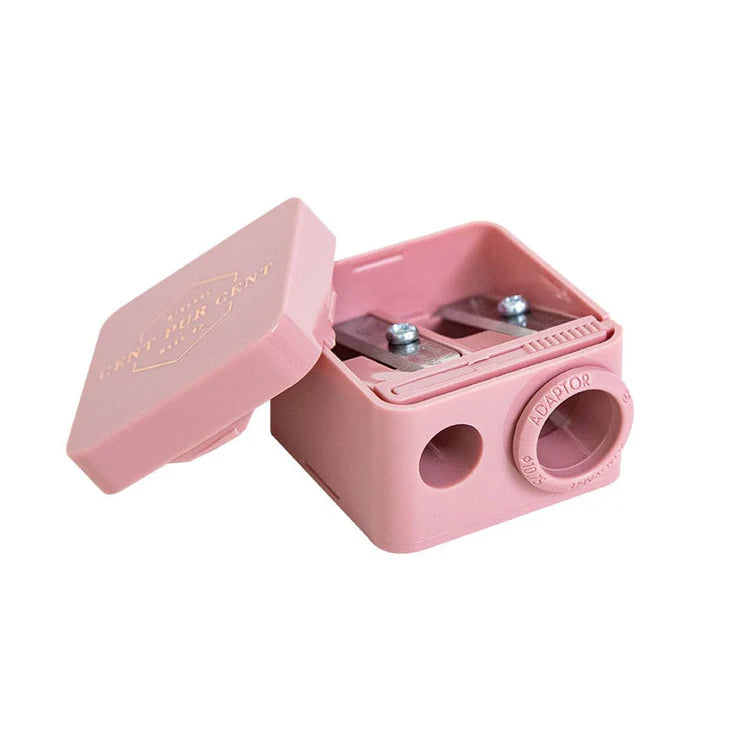 Een handige dubbele slijper om je kleine en grote lip- en oogpotloden mee te slijpen.