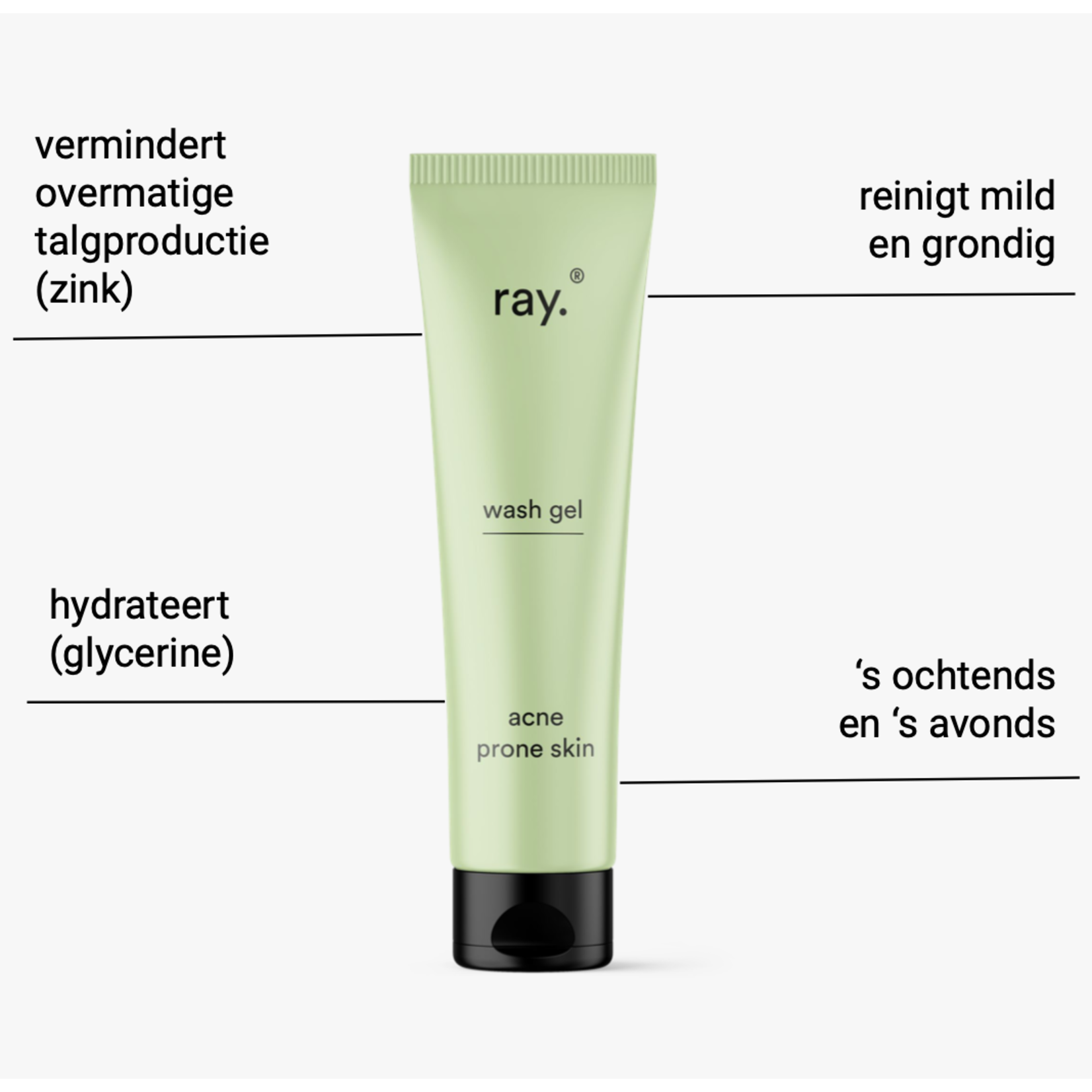 Tip: de Ray-serie voor de acnegevoelige huid is geschikt voor onzuiverheden op het gezicht, de rug en de borst.